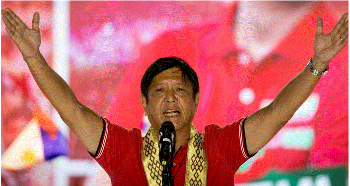 ফিলিপাইনের প্রেসিডেন্ট নির্বাচনে প্রয়াত একনায়ক ফার্দিনান্দ মার্কোসের ছেলে ফার্দিনান্দ মার্কোস জুনিয়র নিরঙ্কুশ জয় পেতে যাচ্ছেন। ৬৪ বছর বয়সী ফের্দিনান্দ ‘বংবং’ মার্কোস জুনিয়র ৯০ শতাংশেরও বেশি ব্যালট গণনা শেষ অনানুষ্ঠানিকভাবে এ তথ্য জানায় নির্বাচন সংশ্লিষ্টরা।